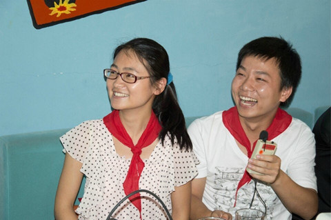 ![]() 下午2点钟,活动正式开始。首先每个人根据自己选择的图片,找到各自的partner,然后两人一小组四人一大组,互相认识并介绍给大家。通过介绍环节,有的同学找到了志同道合的校友,有的同学发现了诙谐幽默的师兄。然后由各自的partner为对方互戴红领巾并跟着主持人一起选读少年先锋队誓词,瞬间回到小学,找回童真的记忆。