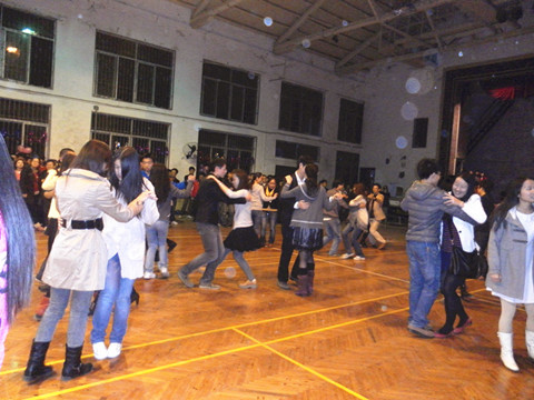 晚上七点钟,舞会正式开始。典雅的音乐响起,男同胞们纷纷邀请自己的舞伴踏入舞池中央,跳起优美的华尔兹,一时乐声悠扬,舞步翩翩。一曲完毕,乐声又变得动感轻快,领舞者跳起恰恰,大家更是热情高涨,随节奏舞动。场面火爆,引发舞会高潮。