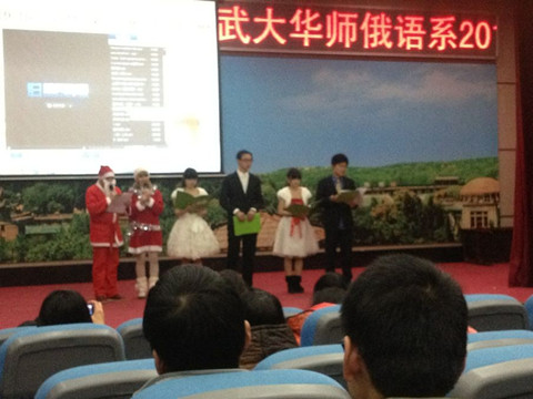 12月29日,第三届武大华师俄语系2013新年联谊会在武汉大学外国语OD网页版大礼堂成功举行。我校俄语系及武汉大学俄语系的领导、老师和全体同学共聚一堂,喜迎新年。晚会由我院俄语系研究生、武汉大学俄语系学生及两校外教共同主持。