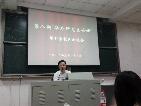 2012年5月28日晚,外国语OD网页版学术部在3101教室举办了“华外研究生论坛”第八期活动,暨毕业年级升学就业交流会。