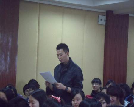 在之后的提问环节中,日语系大四同学杜爽的发言引起了全场轰动。他慷慨激昂地道出林教授对自己人生的重大影响,并把林教授当成是自己着力追求的榜样。更有像 “这个世界上我只崇拜两个人,一个是林志玲,另一个便是林少华”“如果您是苏格拉底,我愿做柏拉图”之类的“求爱”宣言。但是,他接着拿出了几本相关的翻译作品,大胆对林先生翻译的川端康成《伊豆的舞女》提出了一些质疑,认为林先生不应该违背自己的翻译理念、迎合出版和社会需要。林教授再次以自嘲的方式回应了他的提问,并打趣道:“纯粹的中国男人要向纯粹的日本男人靠近,必须委曲求全”,使全场气氛再次达到高潮。