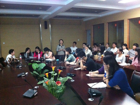 2012年9月21日下午,外国语OD网页版青年教师师德、师能示范课在同声传译室举行。会议由外国语OD网页版副院长杨虹老师主持。韩语系主任池水涌教授、教学秘书李科峰老师、外语OD网页版教学督导王征老师及全院近三年新进教师参与了本次活动。