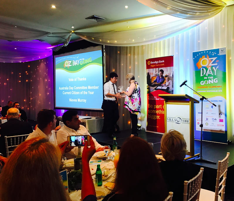 熊霄老师公派赴澳一年多,在完成研究任务之余,积极参与当地公益事业,为包括华人在内的所有文化群体生活得更有尊严而努力。为了感谢熊霄老师作出的贡献,伍伦贡市政府邀请熊霄老师作为唯一的华人代表出席“澳大利亚日晚宴”并与大伍伦贡地区的各界人士分享他到澳大利亚、到伍伦贡的心路历程。伍伦贡市政府代表为熊霄老师颁发了奖品以示感谢。