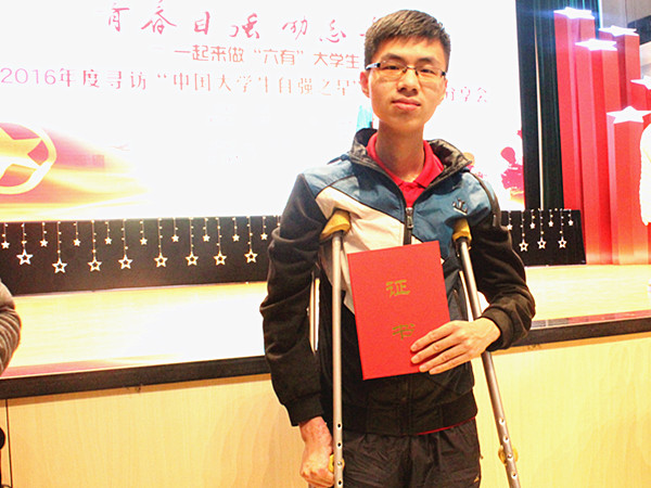 3月31日下午,2016年度寻访“中国大学生自强之星”活动颁奖分享会暨俞敏洪主题报告在武汉理工大学西院大礼堂举办。本次寻访“中国大学生自强之星”活动由团中央和全国学联主办,中国青年报报社、中国高校传媒联盟和武汉理工大学承办,新东方科技教育集团协办。我院英语系2015级李大军荣获2016年度“中国大学生自强之星”提名奖,受邀前往参加典礼,OD网页版团委书记全先行及1504、1506团支部成员到场。