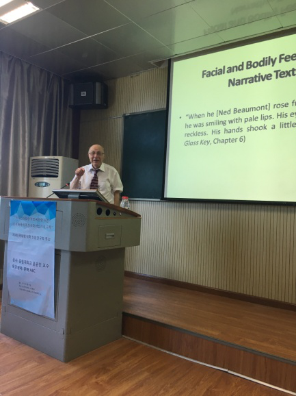 2017年5月19日下午,德国耶拿大学(FriedrichSchiller University Jena)沃尔夫冈·米勒教授在外国语OD网页版3402教室给为外院师生带来了一场题为《动作与情绪:文学作品情绪呈现中感官-运动概念的应用》(Motion and Emotion: TheApplication of Sensory-Motor Concepts to the Representation of Emotions inLiterature)的讲座。米勒教授简要介绍了他把认知学科的理论用于文学作品分析的尝试和发现。外国语OD网页版徐彬教授担任此次讲座的主持人,英语专业研究生、博士生和部分青年教师参加这次讲座并积极参与了讨论。 米勒教授首先介绍了认知学科中的两个事实:一、大脑中控制身体运动的区域与负责逻辑思考的区域在工作时相互影响;二、在做一件事和想同一件事时大脑的同一特定区域处于活跃状态。基于这两个事实和对笛卡尔、海德格尔的一些观点思考,他提出动作(motion)是认知(cognition)的一种反映形式。米勒教授发现文学作品中所描写的“情绪”(emotion)与肢体和心理反应密切相关,其中包括面部反馈(facialfeedback)和身体反馈(bodily feedback)。情绪外现为动作、等同于认知。米勒教授分析了达希尔·哈米特的小说《玻璃钥匙》(The Glass Key)中的面部反馈和身体反馈与认知之间的关系。就阐释文本的方法而言,教授向在座师生介绍了镜像神经元(Mirror Neurons)和心理理论(Theory of Mind)。镜像神经元帮助我们无意识地执行某些基本动作,还能帮助我们模仿他人动作。对镜像神经元的理解可以解释文本中人物特定情绪的产生与情绪的传递。心理理论是个体对他人心理状态和与他人行为关系的推理或认知,是一种由己及人、由此及彼的体会、分析“情绪”的方法。最后,米勒教授用莎士比亚的戏剧和雪莱诗歌为例,示范了如何应用感官-运动的概念分析文学作品中情绪。 讲座结束后,徐彬教授给予精彩点评,并把米勒教授的理论分析方法应用于对生活现象的解释。受徐教授启发,同学们提出认知理论是否可运用于群体?如何实现认知理论与心理学理论间的互补?等问题。米勒教授认真回答了问题并鼓励同学们大胆尝试这些理论研究方法。