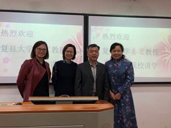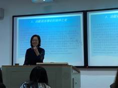 紧接着,姜宏教授从目的、内容、方法和步骤四个方面介绍了俄语语义范畴对比研究的理论依据。并对这些理论的特点进行了总结:它们具有形式和意义双重属性,打破了语法和词汇的界限,坚持了系统语言和言语交际。 姜宏教授对功能语法理论进行了多维思考。她将功能语法理论和语用学、认知语言学、系统功能语言学等结合起来,通过多个理论角度的思考,对功能语言学的缺点进行弥补。 最后,姜宏教授对时空范畴的多维研究框架进行了详细的阐释。首先她指出,多维研究由语义系统、形式系统、句法功能以及分布、语篇分析和文化认知研究等要素组成。然后,姜宏教授引用大量中俄的时空范畴的例证,生动形象地说明了多维研究的框架。 姜宏老师的讲演结束后,我校俄语系的谢蕾和李羽涵同学针对姜教授所讲内容提出了自己的感想和疑问,姜宏教授一一为其做出了解答。随后,我校刘永红教授做总结陈词,她表示:“语言的根本目的是用于交流,服务表达,因此在学习语法的过程中,我们不应只注意语法的形式,而在语言功能的项下应该思考语法的用途和目的。”她希望学生能够热爱语法,热爱俄语,为了恰当地表达自己的思想而学好语法。大家以热烈的掌声再次对姜宏教授的到来和精彩的讲演表示感谢。 讲座结束后,老师们进行了合影留念。