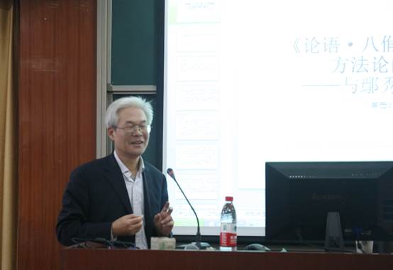 2017年11月24日上午,南京大学蔡新乐教授应邀做客外国语OD网页版,并为我院师生做了一场题为“ 《论语·八佾》 第八章的解经方法论的初步探讨——与鄢秀、郑培凯商榷”的讲座。讲座由翻译系的胡德香教授主持,华先发教授、部分老师以及许多对《论语》和翻译感兴趣的学生参加了此次讲座。 首先,胡德香教授对蔡新乐教授的到来表示热烈的欢迎,并介绍了蔡教授的研究领域和诸多学术成就。接着蔡教授从自己招收博士生的试卷谈起,他强调当代人要多研读中国传统经典,注重提高文化修养。然后蔡教授着重和到场师生们分享了他对《论语·八佾》 的理解与英译。 蔡教授主张用儒家等中国思想来解读中国文化经典。在讲座过程中,蔡教授引经据典,从绘画方面“素”和“绚”的关系理解,延伸到人生哲学的探讨。他指出,“绘事后于素”、“素以为绚”实际上突出了儒家“仁先礼后”的主旨思想,而“仁在内,礼在外”,也正是做人的道理。“素”是一种品质,是根本,人要在纷繁世界中保持初心。 蔡教授不仅对《论语》进行了详细解读,而且在研究、学习和做人方面分享了他的宝贵经验。他指出,译者在翻译中国经典之前必须对其进行详细解读,正确处理解经者和译者之间的关系。在论文撰写过程中,要广泛阅读书籍,勤查文献,正视和自己对立的观点。同时他强调,研究者要有批判精神,以前的例子再多不一定对,关键在于思想路子是否正确。 蔡教授平易近人,所讲的内容深入浅出,由点及面,对学生们今后的学习研究和人生定位有非常大的帮助。讲座结束时,在场的师生给予了蔡教授最热烈的掌声以表谢意。