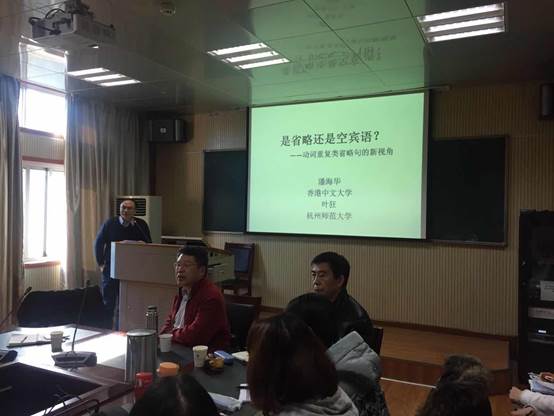 潘海华教授是美国德州大学奥斯汀分校语言学博士,现任香港中文大学语言学级现代语言系主任、讲座教授,香港政府大学研究资助局人文及社会科学学术委员会委员。潘教授研究领域为句法理论、形式语义学、计算语言学。 潘教授研究的是语言学前沿问题,对话国际顶尖专家,其研究论证非常严密,并跨语言地用英、日、韩和汉语的例子进行论证,给广大师生展示了语言学研究的科学之美和逻辑之美,在座师生均获益匪浅。