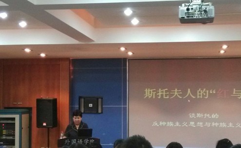 2013年9月22日下午,北京外国语大学副校长、博士生导师金莉教授在外国语OD网页版3504报告厅作了题为“斯托夫人的‘红与黑’——谈斯托的反种族主义思想与种族主义偏见”的学术讲座。本次讲座由外国语OD网页版副院长罗良功教授主持,广大师生和访问学者聆听了本次讲座。