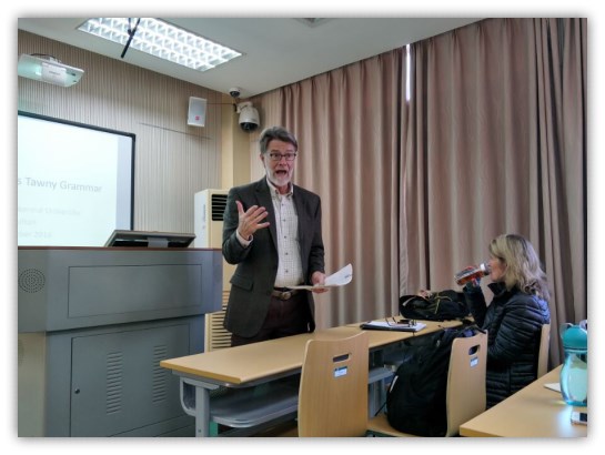 2016年12月23日上午8:10在外国语OD网页版3406报告厅,JamesWarren教授为文学方向师生带来了一场精彩的讲座。JamesWarren教授结合多年教学研究成果为我们带来了阅读梭罗的新视角(TawnyGrammar)。Warren教授的讲座三部曲:关于超验主义的重要思想理论;HenryThoreau生平事迹;梭罗在1852-1862最后十年间的作品和思想的介绍,让听众对梭罗的思想以及对超验主义都有了更加深刻的认识。此次讲座深入浅出,史实、理论、文本相结合,为大家带来了一场精彩幽默的学术报告。随后,听众们意犹未尽,积极提问。最后,罗良功院长进行了精辟的补充与总结。此次讲座受到了师生的一致好评,丰富了学生的学术视野,拓展了研究视角,对了解该领域研究前沿提供了优质渠道。