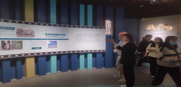 在1号展厅,陈美玲同学向外国友人介绍了中国履约三十周年的丰硕成果,感悟人与湿地和谐共生的故事。过去三十年见证了中国自加入湿地公约后在立法保障、科技支持、民众爱护等方面取得的良好成效,得到外国友人称赞。