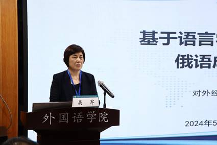 首场报告的主讲嘉宾是北京大学宁琦教授。宁琦教授以《国际传播视域下的高校俄语专业建设和人才培养》为题,从讲好中国故事、传播好中国声音的高度,聚焦国际传播视域下高校俄语专业建设和人才培养的目标与路径,指出我国高校俄语在人才培养方面要定位准、起点高、理念新、方法实、效果佳,务实管用,提质增量,才能发挥好俄语的优势,切实推动国家外宣能力的提升,助力国际传播事业的持续发展,为我国高校俄语的发展,包括成语研究指明了方向。
