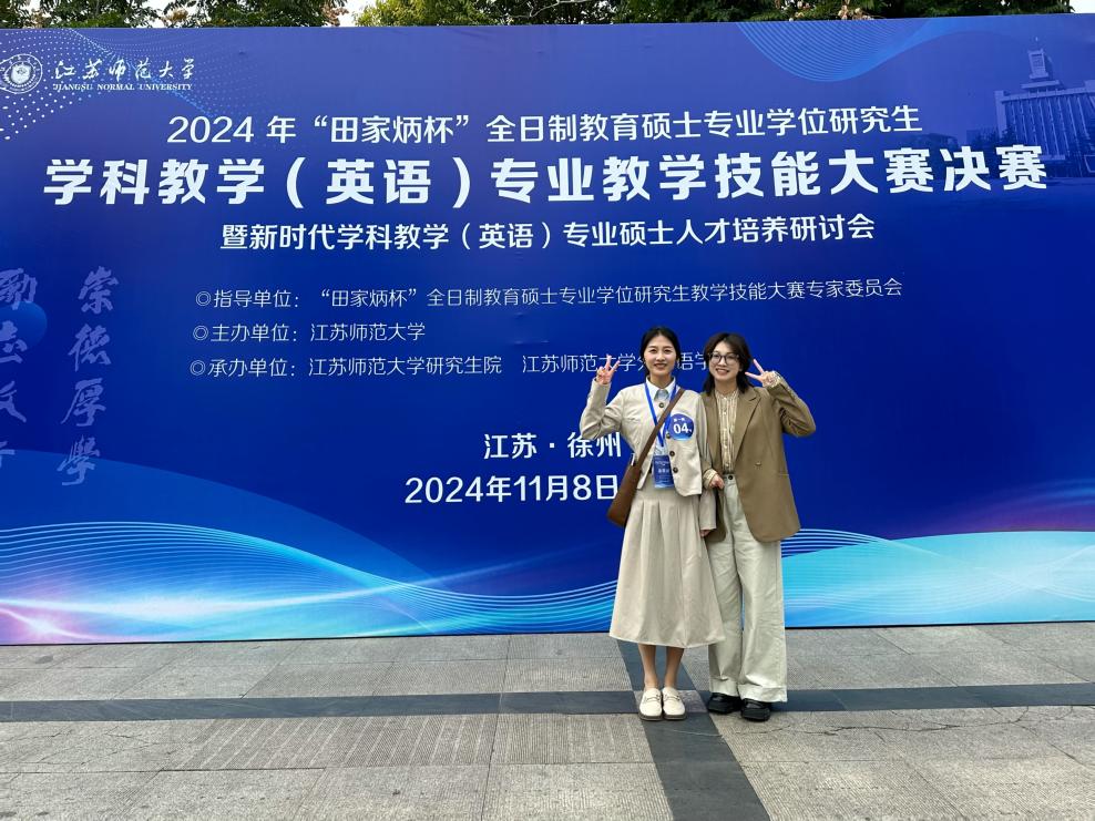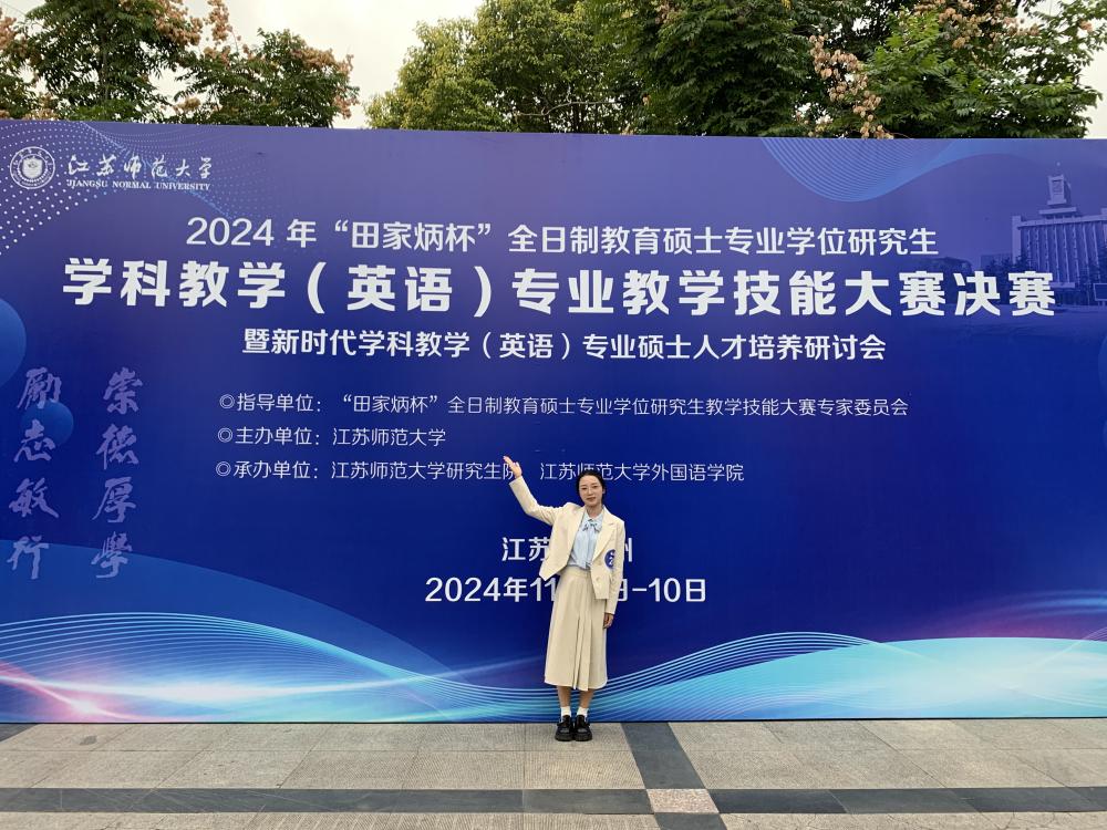 2024年11月10日,2024年全国“田家炳杯”全日制教育硕士专业学位研究生学科教学(英语)专业教学技能大赛(决赛)在江苏师范大学落下帷幕,我院研究生荣获佳绩。其中,我院邓炜鹏、芮淑仪获得一等奖,李恺获得二等奖,王静获得三等奖,黄志婷获得“优秀教学设计”奖。