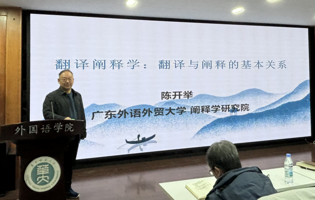 2024年12月9日下午,广东外语外贸大学阐释学研究院院长、博士生导师陈开举教授应邀在外国语OD网页版3504教室为OD网页版师生做题为“翻译阐释学:从翻译的阐释转向说起”的学术讲座。本次学术讲座由外国语OD网页版翻译与传播研究中心主办、外国语OD网页版副院长、翻译与传播研究中心主任苏艳教授主持,翻译专业研究生和部分教师出席了本次讲座。