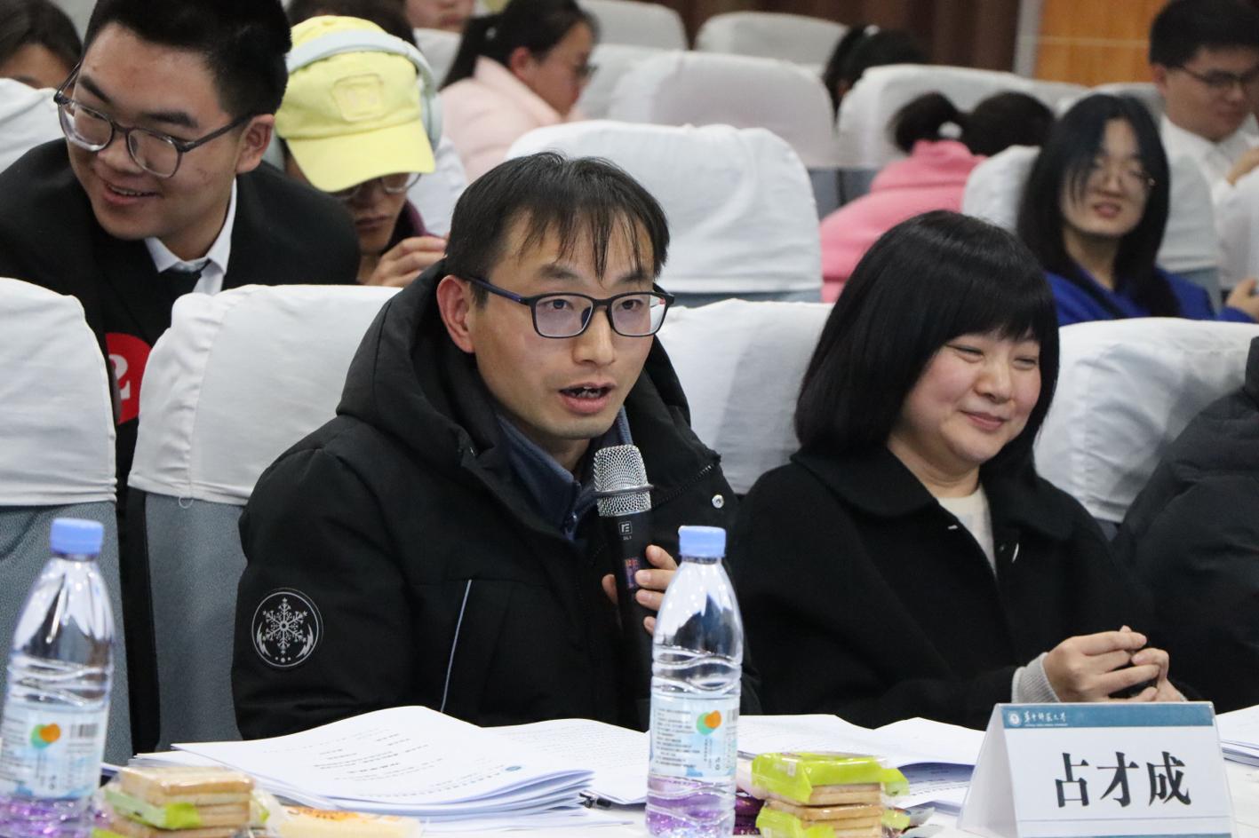 十二组团队的展示结束后,评委老师对各个团队的表现进行了综合点评。他们对各团队的创新理念表示赞同,同时也提出了合理化的建议。占才成老师点明了选题的重要性并对同学们的创新想法提出肯定,希望同学们将比赛中的创新精神运用到学习生活中。