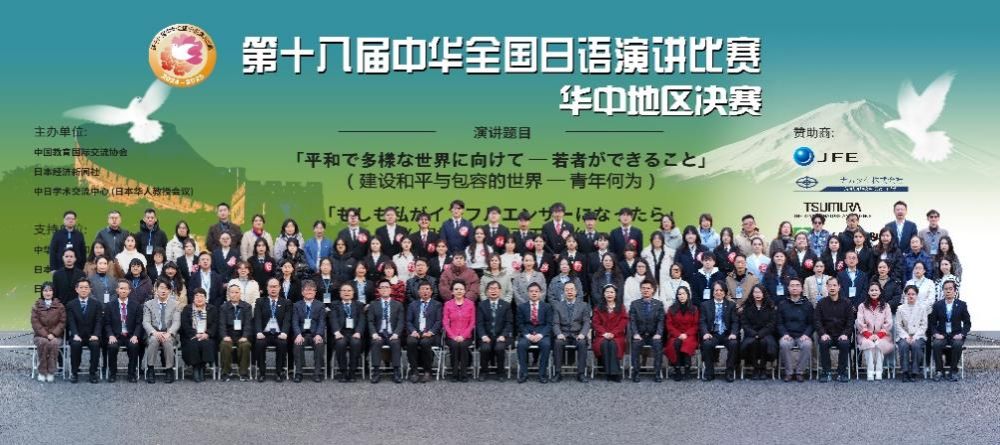 2024年12月28日,由中国教育国际交流协会与日本经济OD(中国)社、中日学术交流中心(日本华人教授会议)共同主办,由教育部高等学校外国语言文学类专业教学指导委员会日语专业教学指导分委员会、中国日语教学研究会作为协办单位,由日本国外务省、日本国文部科学省、中华人民共和国驻日本国大使馆、中国日本友好协会、日中友好会馆和中国日本商会支持的,第十八届中华全国日语演讲比赛华中地区决赛,在华中师范大学大学生活动中心大礼堂成功举办。