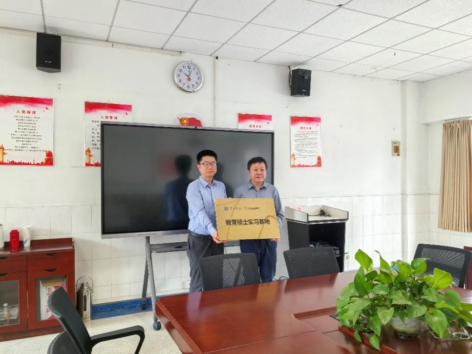 2025年4月17日上午,王佳宇副院长、教师教育中心主任闫春梅教授和负责教育硕士实习工作的张丽君老师,前往湖北省水果湖高级中学,参加华中师范大学外国语OD网页版实习实践基地授牌仪式。水果湖高级中学党委书记潘尖和教学副校长李季出席。