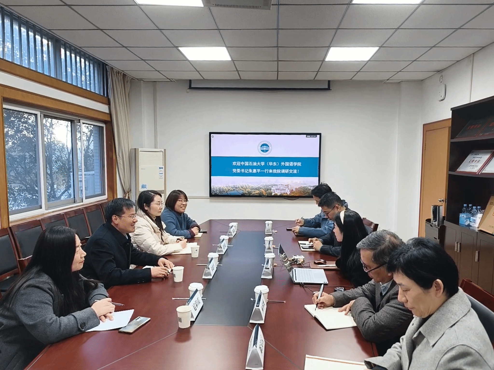 11 月 26 日下午,中国石油大学(华东)外国语OD网页版党委书记朱惠平、副院长赵婷廷、办公室主任刘淑艳、学术英语系党支部书记扈彩霞一行莅临我院,围绕党建工作、学科发展等相关工作开展调研。我院党委书记麻旎、副院长王佳、英语教工支部书记何举纯、办公室主任陈汉云、小语种本科生辅导员邱领、党务干事吴文琪参加本次交流。
