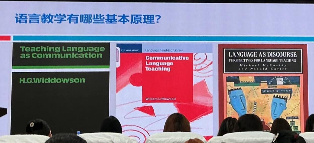 讲座中程晓堂教授特别强调了研读外语教学理论与经典著作的重要性。他推荐了如Teaching Language as Communication, Communicative Language Teaching, Content and Language Integrated Learning等多部具有代表性的国外权威著作,指出系统学习这些书籍对于教师提升教学理念和专业成长的重要性。结合自身经历,程教授分享了早期深入研读经典书籍对其教学与研究生涯发展的深远影响,鼓励教师与研究生们积极阅读原版著作,提升理论素养,用理论照亮课堂实践。