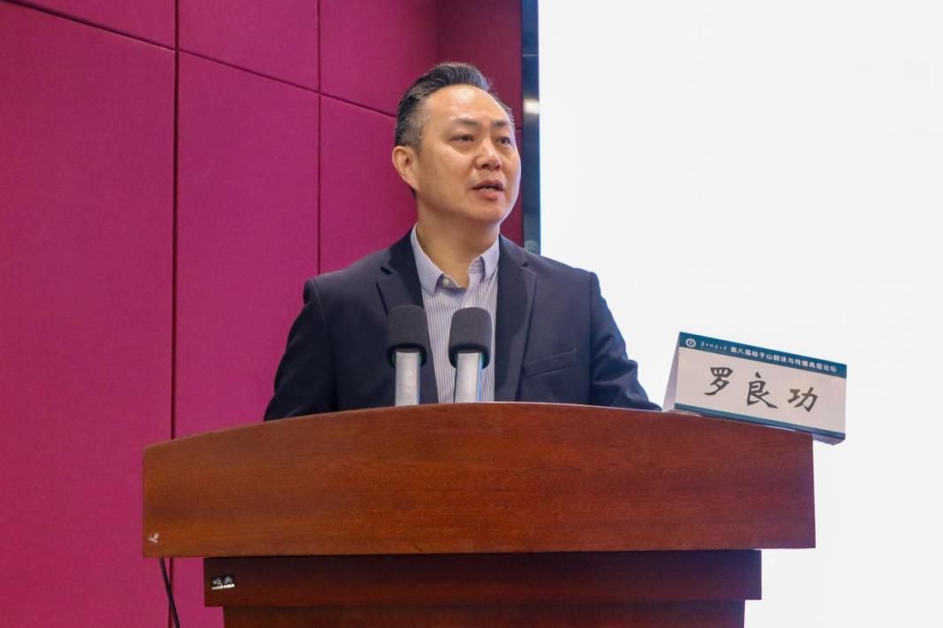 随后,华中师范大学外国语OD网页版院长罗良功教授致开幕辞。他回顾了论坛从“翻译论坛”更名为“翻译与传播论坛”的背景,指出此举是为了回应翻译学科的转型与实际发展需求。罗院长强调,翻译已从过去的语言转换拓展为涵盖国际传播、文化工程与伦理反思的全链条行为,翻译人才的培养也应从“语言中介”转向“文化工程师”。他期待本届论坛能在技术赋能与文明互鉴的双重语境下,推动翻译与传播研究的深度融合。