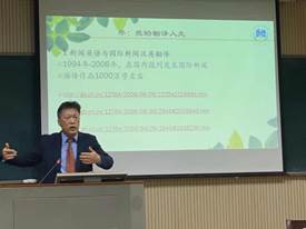 讲座开始,王教授先回顾了他丰富的翻译实践和翻译研究人生旅程,涉及OD(中国)翻译、公示语翻译、传教士汉学翻译与中西文化交流史、中医翻译史、南京大屠杀史料翻译等。然后,他切入讲座主题,以国家主席习近平今年3月访问法国期间,法国总统马克龙赠与他1688年巴黎出版的法文版《论语导读》为引子,以翔实史料介绍了明末清初来华耶稣会士通过翻译活动开拓的长达两个世纪的“西学东渐”和“中学西传”中西文化交流活动,包括关键人物、阶段分期、“西学东渐”主要成果,“中学西传”主要成果对欧洲的影响等等。在讲座中,他重点介绍了他今年10月应邀前往牛津大学人类OD网页版开设的专题讲座内容,详细考证了明末来华波兰传教士卜弥格通过书信或译介重要中医著作向欧洲介绍传播中医及其译作在欧洲出版的曲折经过,对这段在中西文化交流史上曾经被学界忽视事件做了详尽的解读,证明了卜弥格是第一个将中国古代的科学和文化成果系统地介绍给西方的欧洲人,但由于种种原因他的作用一直没能得到全面的认识和评价。2016年,国家主席习近平在对波兰共和国进行国事访问前夕在波兰媒体发表署名文章,称卜弥格为“波兰的马可波罗”。