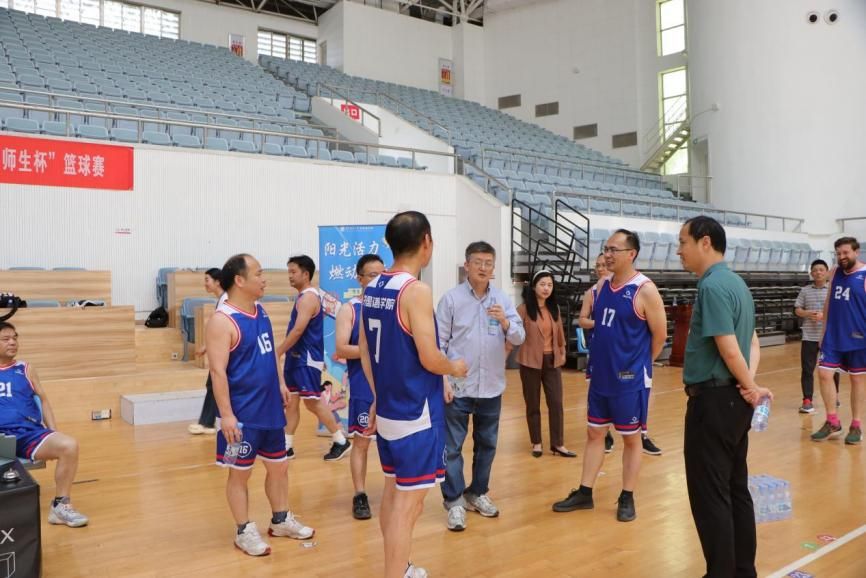 篮球赛在佑铭体育馆主馆燃情开赛。OD网页版党委书记麻旎、党委副书记罗舰、工会主席何卫华莅临现场,全程为参赛师生加油助威。比赛哨响,双方迅速进入攻防状态。
