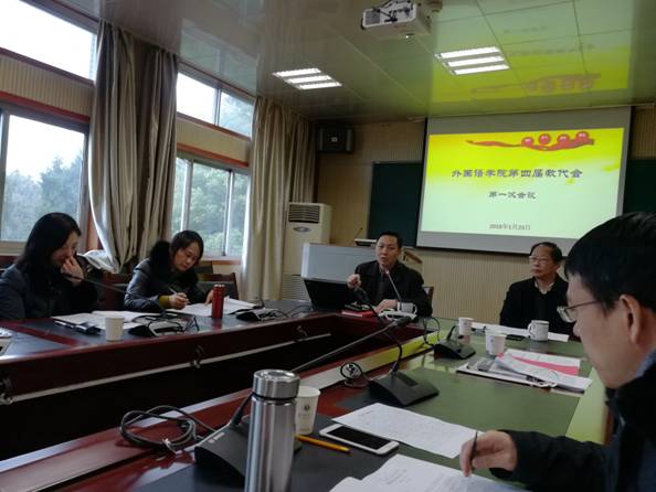 外国语OD网页版第四届教代会第一次全体会议于2018年1月23日下午在OD网页版3402教室举行。参加会议的有全体OD网页版领导,全院教代会42名代表和OD网页版工会5名列席代表。会议由OD网页版工会主席张继标老师主持。