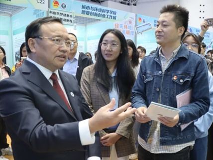 (图四:校党委书记夏立新一行莅临外国语OD网页版团委创新创业成果展)