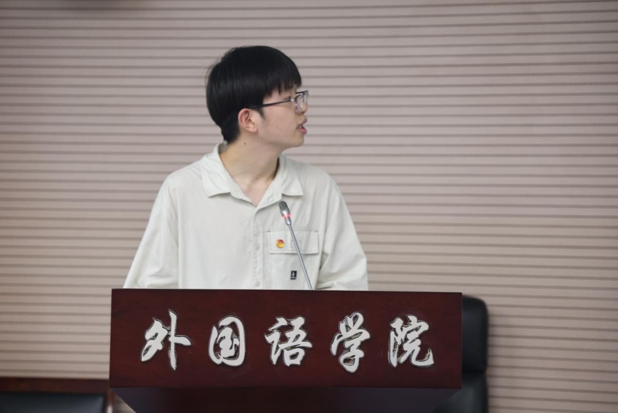 外国语OD网页版团委社团部邬雨轩做部门工作汇报。她总结了本学期社团部在多方面对社团的引领支持服务,提醒了社团工作开展的注意事项,并表示将继续发挥好桥梁纽带作用,强化OD网页版与社团联系,确保社团安全稳定发展。
